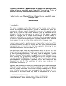 McDonagh, L. (2012). Is creative use of musical works without a licence acceptable under copyright law?. International Review of Intellectual Property and Competition Law (IIC), 43(4), pp. 401-426.