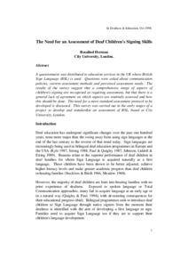 Herman, R. (1998). The need for an assessment of deaf children's signing skills. Deafness & Eduction International, 22(3), pp. 3-8.