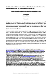 McDonagh, L. & Helmers, C. (2013). Patent litigation in England and Wales and the issue-based approach to costs. Civil Justice Quarterly, 32(3), pp. 369-384.