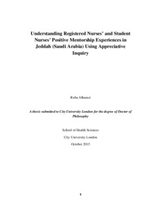 Alharazi, Ruba (2015). Understanding registered nurses’ and student nurses’ positive mentorship experiences in Jeddah (Saudi Arabia) using appreciative inquiry. (Unpublished Doctoral thesis, City University London)