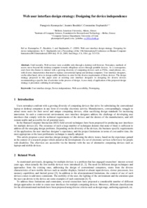 Karampelas, P., Basdekis, I. & Stephanidis, C. (2009). Web user interface design strategy: Designing for device independence. In: Proceedings of the 13th International Conference on Human-Computer Interaction HCI International. 5th International Conference, UAHCI 2009, 19-24 Jul 2009, San Diego, USA.