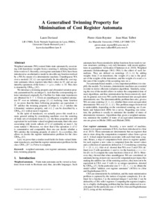 Daviaud, L., Reynier, P-A. & Talbot, J-M. (2016). A Generalised Twinning Property for Minimisation of Cost Register Automata. In: LICS '16 Proceedings of the 31st Annual ACM/IEEE Symposium on Logic in Computer Science. Thirty-First Annual ACM/IEEE Symposium on Logic in Computer Science (LICS), 05 -08 July 2016, New York City, USA. doi: 10.1145/2933575.2934549