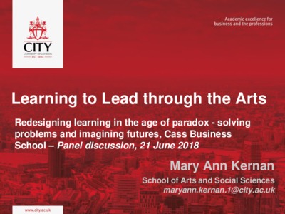 Learning to Lead through the Arts, Redesigning learning in the age of paradox - solving problems and imagining futures, Cass Business School.