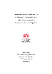 Jia, S. (2019). The impact of secured transactions law on shipowner’s contractual security in the chartering industry: common and civil law perspectives. (Unpublished Doctoral thesis, City, University of London)