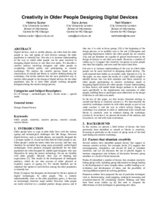 Sustar, H., Jones, S. & Maiden, N. (2011). Creativity in Older People Designing Digital Devices. Paper presented at the CREATE’11 Symposium, 23 Jun 2011, London, UK.