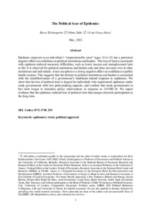 Epidemic exposure in an individual’s “impressionable years” (ages 18 to 25) has a persistent negative effect on confidence in political institutions and leaders. This loss of trust is associated with epidemic-induced economic difficulties, such as lower income and unemployment later in life. It is observed for political institutions and leaders only and does not carry over to other institutions and individuals. A key exception is a strong negative effect on confidence in public health systems. This suggests that the distrust in political institutions and leaders is associated with the (in)effectiveness of a government’s healthcare-related response to epidemics. We show that the loss of political trust is largest for individuals who experienced epidemics under weak governments with low policymaking capacity, and confirm that weak governments in fact took longer to introduce policy interventions in response to COVID-19. We report evidence that the epidemic-induced loss of political trust discourages electoral participation in the long term.