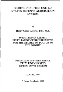 Alberts, H. C. (1995). Redesigning the United States defense acquisition system. (Unpublished Doctoral thesis, City, University of London)