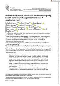 How do we harness adolescent values in designing health behaviour change interventions? A qualitative study.