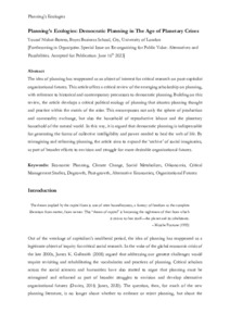 Planning's Ecologies: Democratic Planning in The Age of Planetary Crises