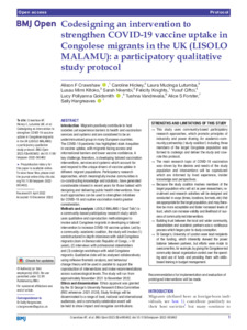 Codesigning an intervention to strengthen COVID-19 vaccine uptake in Congolese migrants in the UK (LISOLO MALAMU): a participatory qualitative study protocol.
