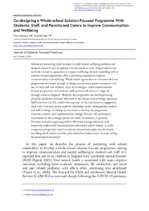 Co-designing a Whole-school Solution Focused Programme With Students, Staff, and Parents and Carers to Improve Communication and Wellbeing.