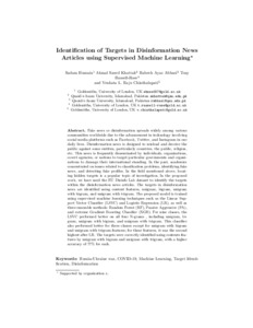 Identification of Targets in Disinformation News Articles Using Supervised Machine Learning.