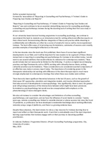 Reporting in Counselling and Psychotherapy: A Trainee's Guide to Preparing Case Studies and Reports.