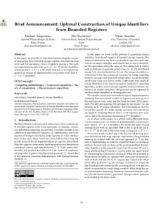 Brief Announcement: Optimal Construction of Unique Identifiers from Bounded Registers.